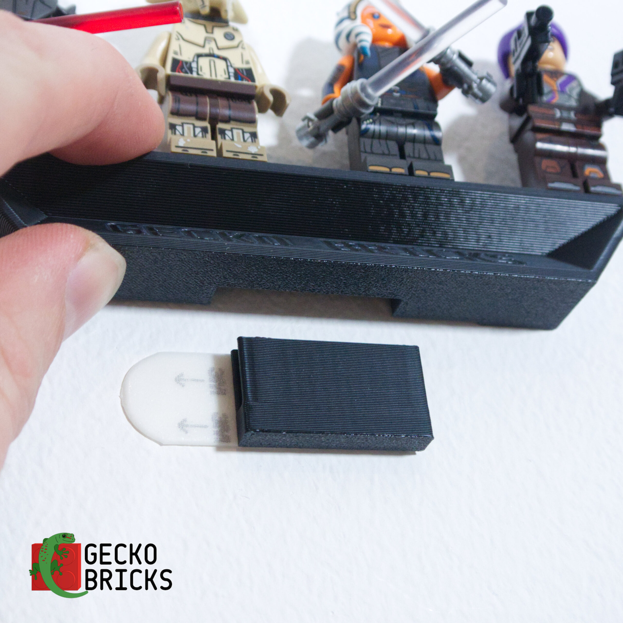• Includes a mount for the minifigures (secured using an include 3M command strip)