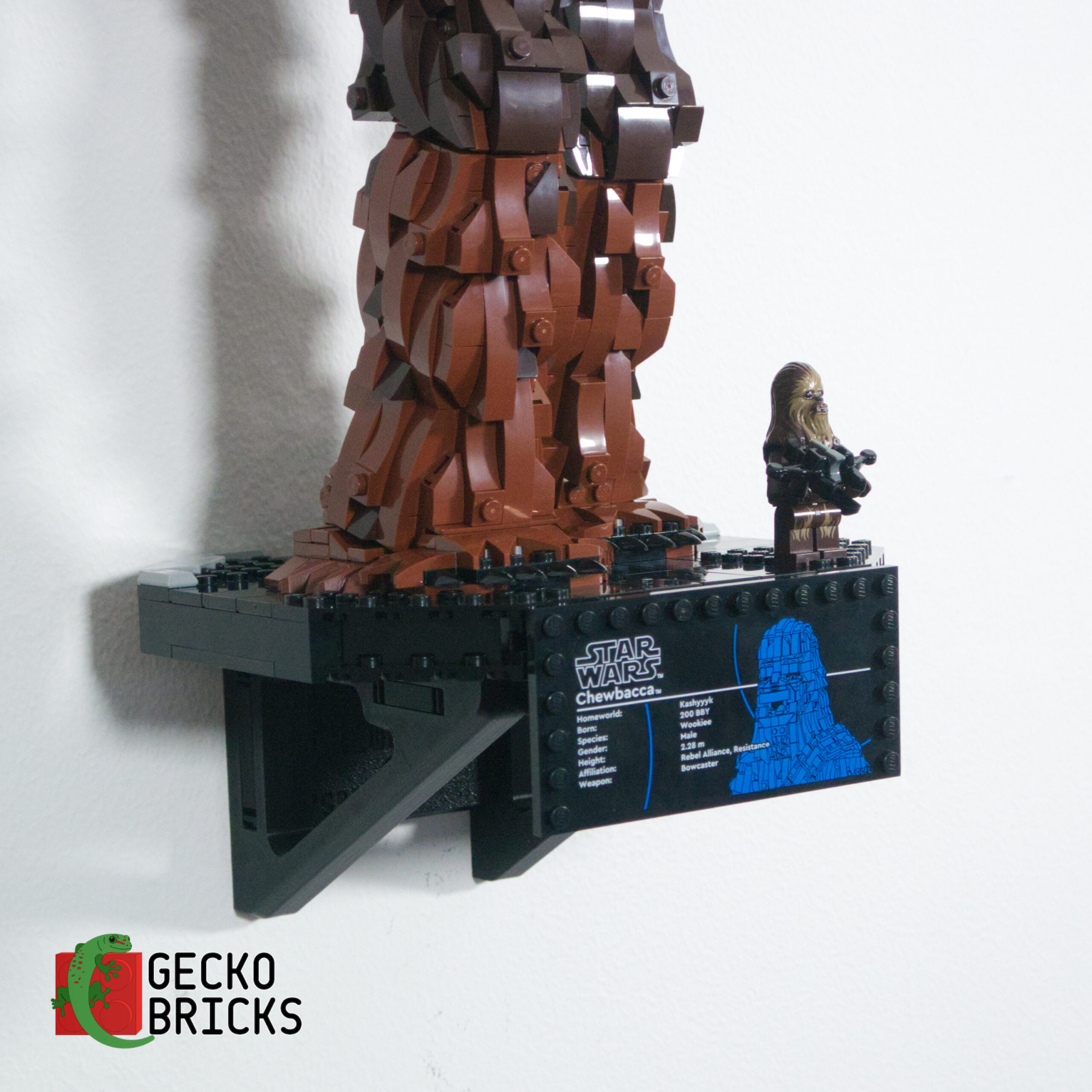 Includes a mount for the info card and minifigure